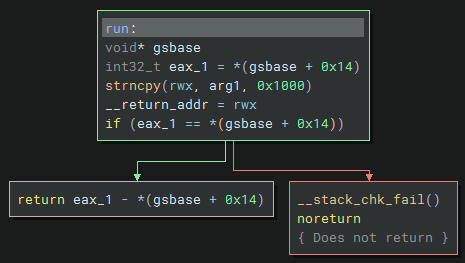 This however still didn’t seem to work outside of gdb, only after adding exactly 32 bytes (0x20) to the second argument did it successfully execute the shellcode.