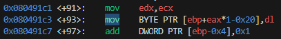 0x080491bb <+53>: mov WORD PTR [ebp-0x6],ax