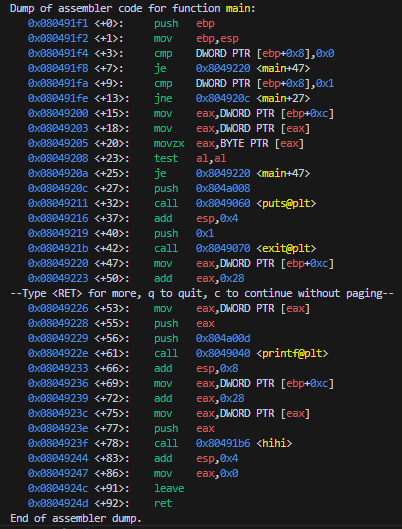 If so, then it prints a Here we go - %s\n message with the value from the overflowed envp buffer and passes it to the hihi() function.